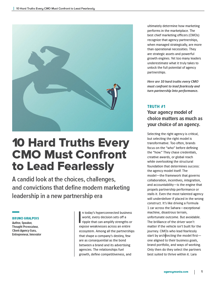 In today’s hyperconnected business world, every decision sets off a ripple that can amplify strengths or expose weaknesses across an entire ecosystem. Among all the partnerships that shape a company’s destiny, few are as consequential as the bond between a brand and its advertising agencies. The relationships fuel growth, define competitiveness, and ultimately determine how marketing performs in the marketplace. The best chief marketing officers (CMOs) recognize that agency partnerships, when managed strategically, are more than operational necessities. They are strategic assets and powerful growth engines. Yet too many leaders underestimate what it truly takes to unlock the full potential of agency partnerships.