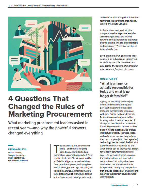 By asking harder, smarter, and more forward-looking questions, marketing procurement leaders elevated their role from stewards of efficiency to architects of progress. They defined a permanent shift in how value is created, measured, and shared, one that makes a return to old models neither realistic nor relevant. In doing so, they proved a defining truth of this era: those who shape the questions don’t just influence the future, they build it. One question at a time.