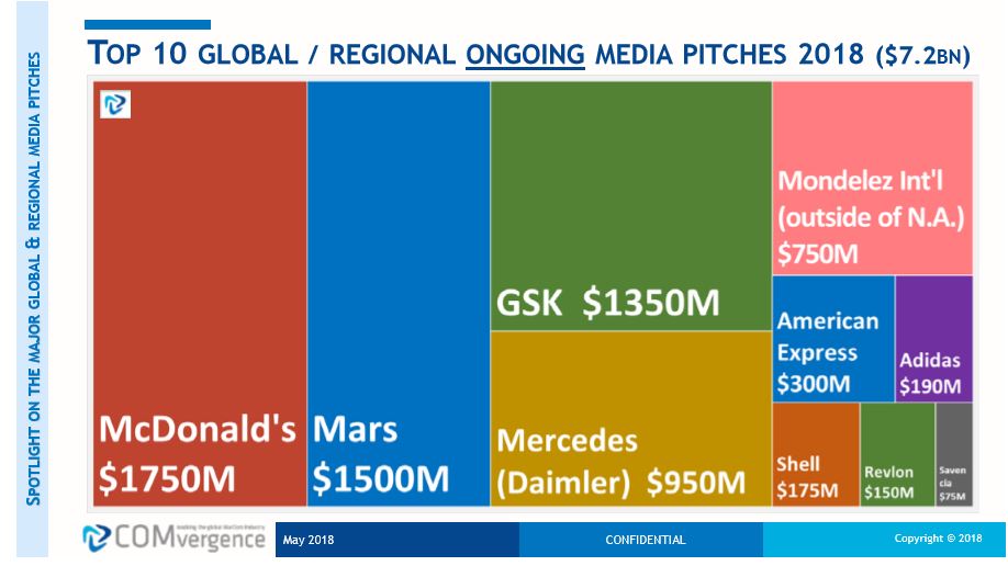 - Out of the $3.9 billion of spend reviewed in Q1 2018, independent agencies have a combined 16% share ($610M), of which a great part is concentrated in the US ($470M).