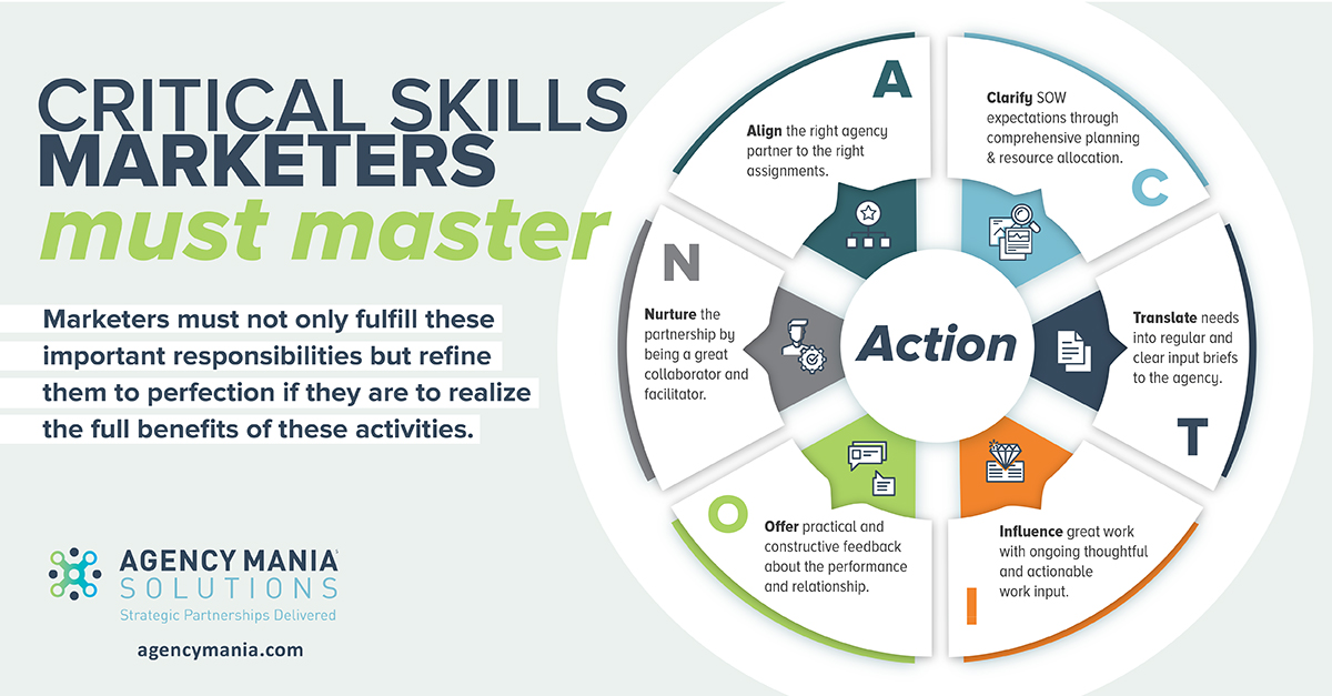In summary, marketers must take immediate ACTION to positively impact the work that they rely on their agencies to produce. When they do, they set their agency partners up to be successful at meeting their own marketing objectives. You see, an agency is only as good as their client’s ability to enable them. And that’s what mastering agency relationships is all about.